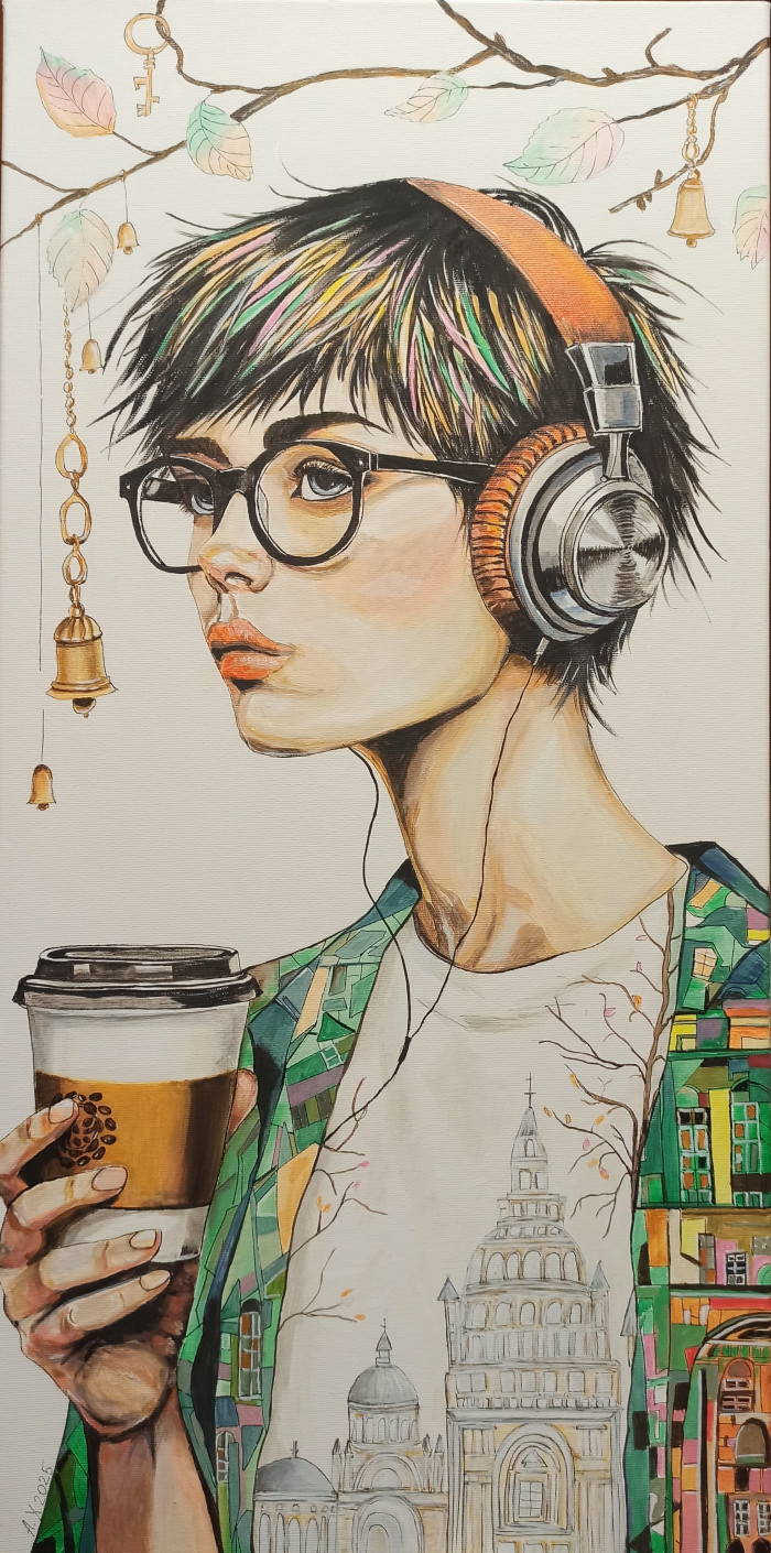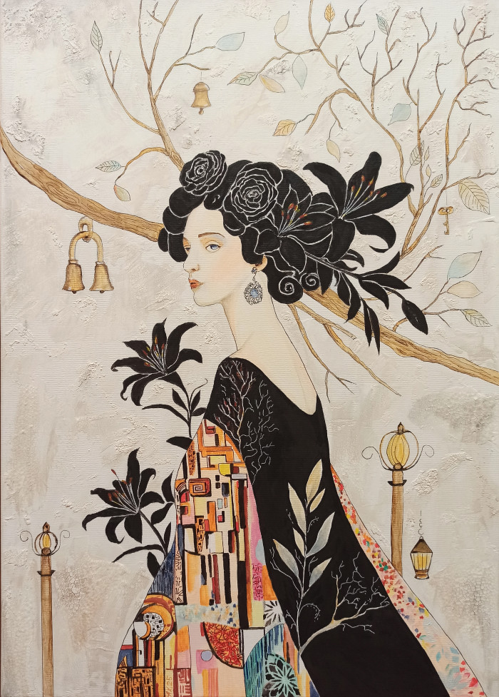 2025 год завершён мною мыслью, которую долго носила в себе и наконец перенесла на холст. Моя «Современница» из цикла «Берегини» — это и итог, и начало.