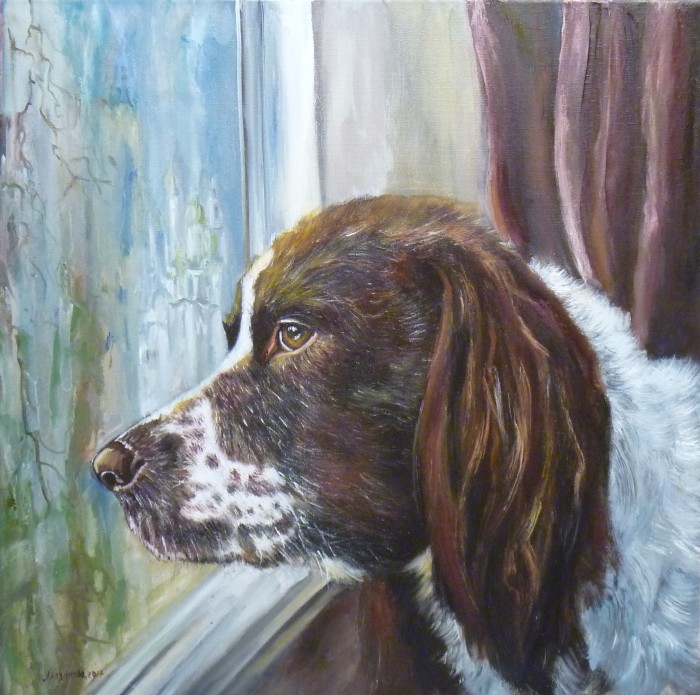 Этот взгляд знаком каждому, кто когда-либо задерживался на работе допоздна. Собака у окна, несмотря на дождь и непогоду— она ждёт. Неважно, пять минут или пять часов: её надежда не гаснет.